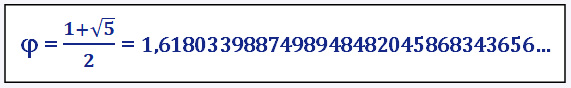 Cette Divine proportion, notée φ, est appelée aussi nombre d’or, et a pour valeur exacte :